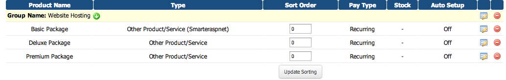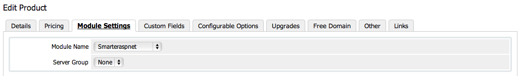 5) For each of your hosting plan, click on the 'EDIT' icon to edit it. In the edit section, go to Module Settings and you'll see 'Smarteraspnet' in your module list. Select 'Smarteraspnet'