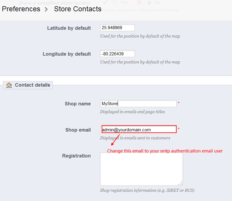 2. Go to Preference -> Store Contact and change email to SMTP user’s email.