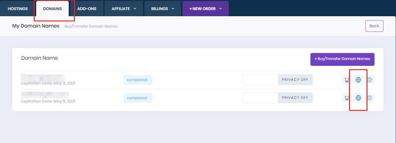 To update your domain DNS records, you can login to your Member account --> Domains --> Click "DNS Records" button, then it will redirect you to DNS Manager: