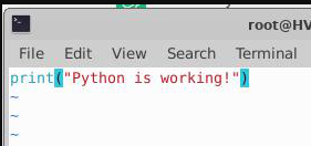 Python is working! should be printed in the terminal if it is working correctly.