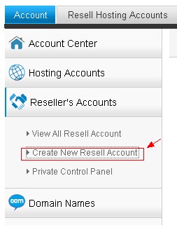 2. Click 'Reseller's Accounts' --> Create New Resell account on the left menu