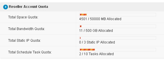 Reseller Account Quota' on that page (It shows you the reseller account total quota, and used quota)
