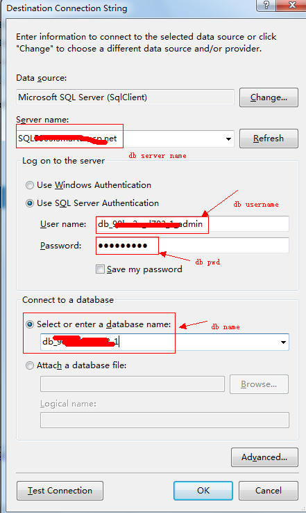 5. Fill your Web Deploy publish login information, validate the connection to check if it is ok, and remember to accept the certificate warnning message.